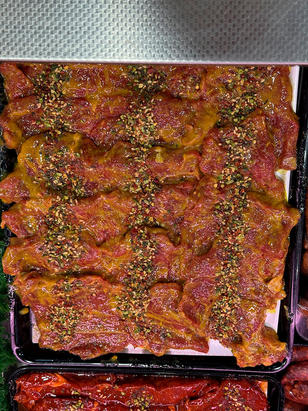 Préparé dans notre boucherie halal artisanale à Noisy-le-Sec, ce faux-filet mariné au citron et romarin est une invitation à la fraîcheur. Issu de viande de bœuf 100% halal et d’origine française, il est assaisonné maison avec une marinade délicate à base de jus de citron, d’huile d’olive et d’herbes fraîches.