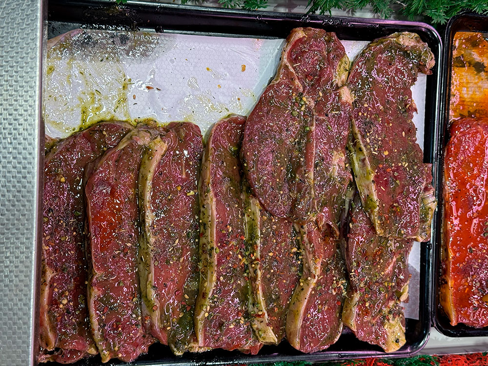 Savourez l’excellence de notre faux-filet mariné maître d’hôtel, préparé dans notre boucherie halal artisanale à Noisy-le-Sec. Cette pièce de bœuf 100% halal, d’origine française, est délicatement assaisonnée avec une marinade maison au beurre, persil et ail, pour une tendreté maximale et un goût raffiné.